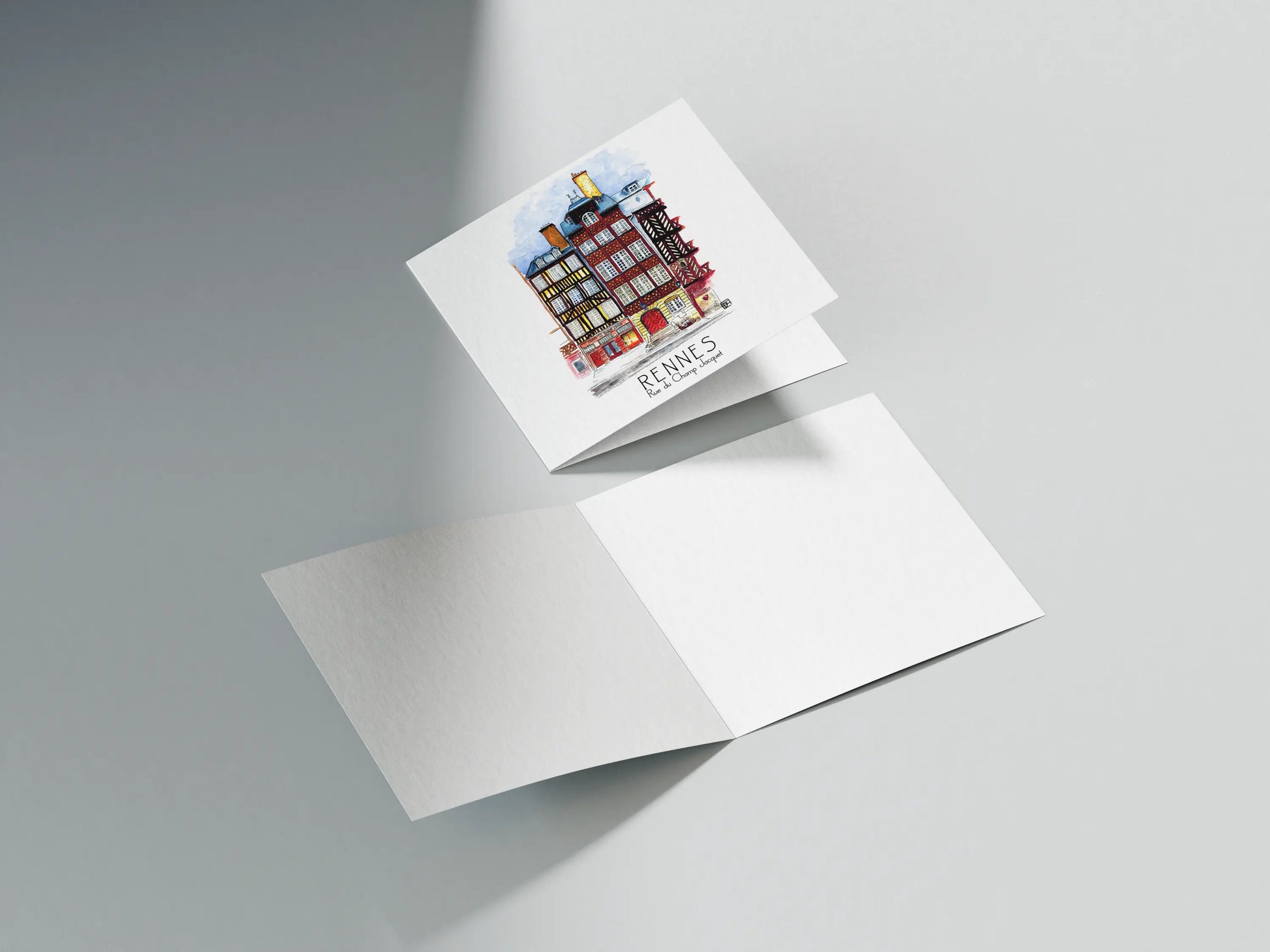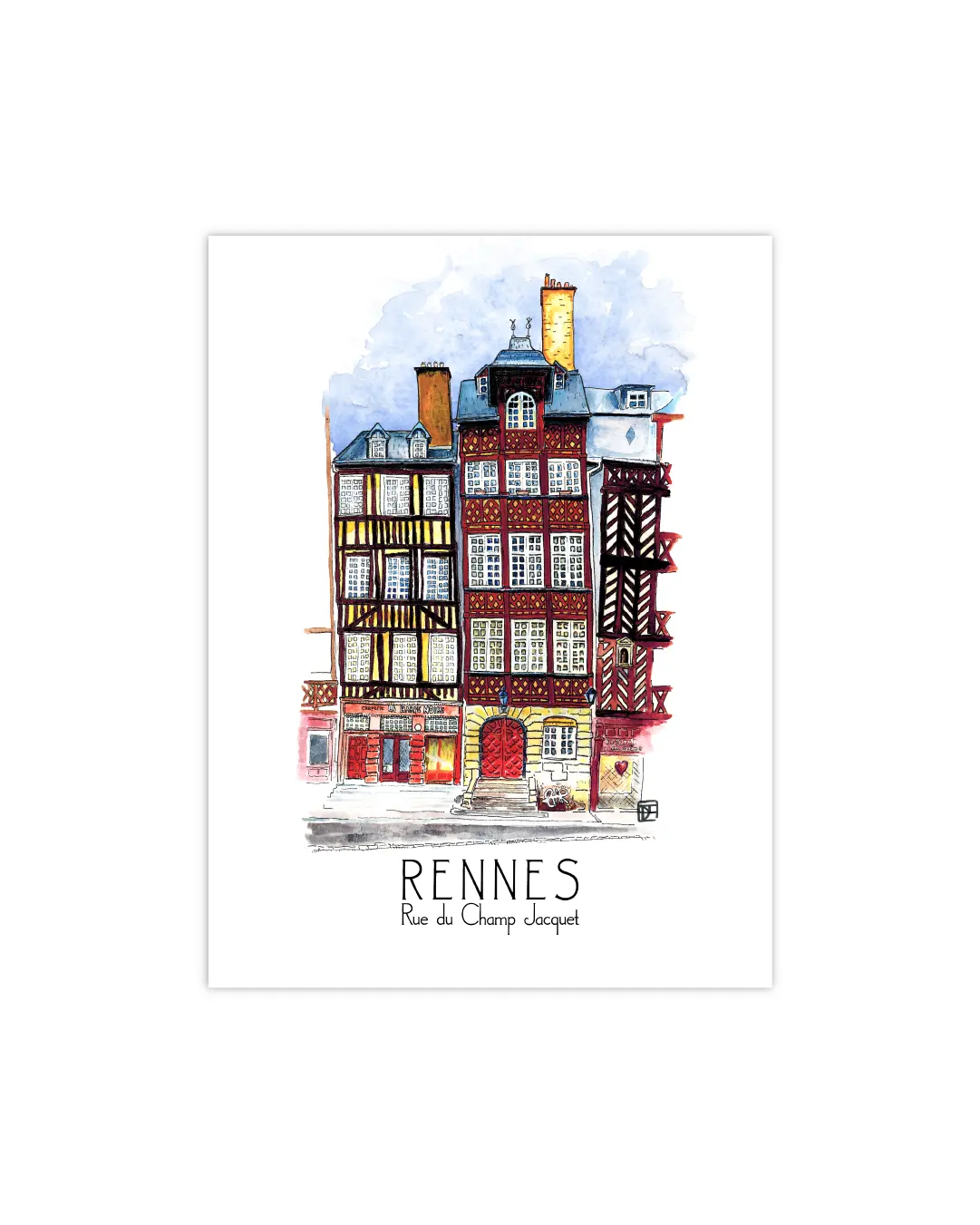 Illustration de la place du Champ-Jacquet à Rennes. Dessinée et faite à la peinture aquarelle.